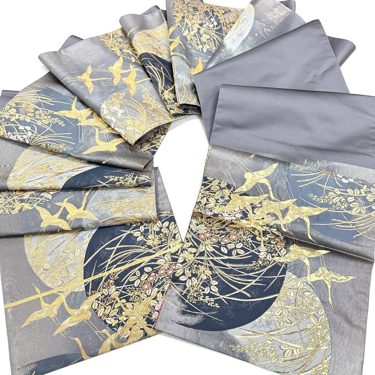- 【七福】c556 逸品 高級品 正絹 袋帯 六通 鶴 草花 金糸 刺繍 豪華