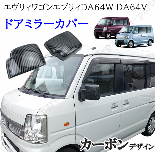 - エヴリィワゴン エブリィDA64W DA64V ドアミラーカバー カーボンデザイン 純正ドアミラー上貼り付け
