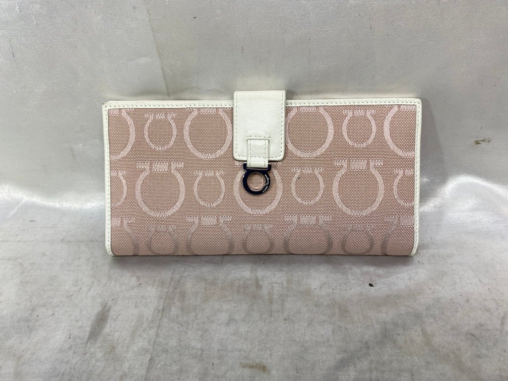 > salvatore Ferragamo サルバトーレ フェラガモ イタリア製 キャンバス レザー 総柄 長財布 カラー:ピンク系 レディース