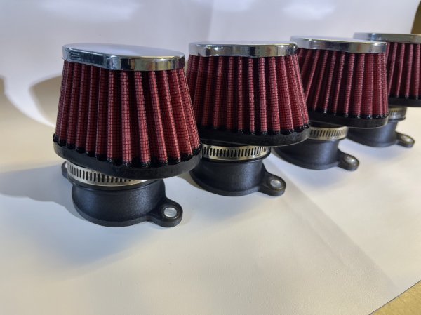 - AE86などに AE111用4連スロットル エアクリアダプタ エアクリーナー赤 斜め出し 4スロ 3Dプリンタ制作 PC製 送料無料