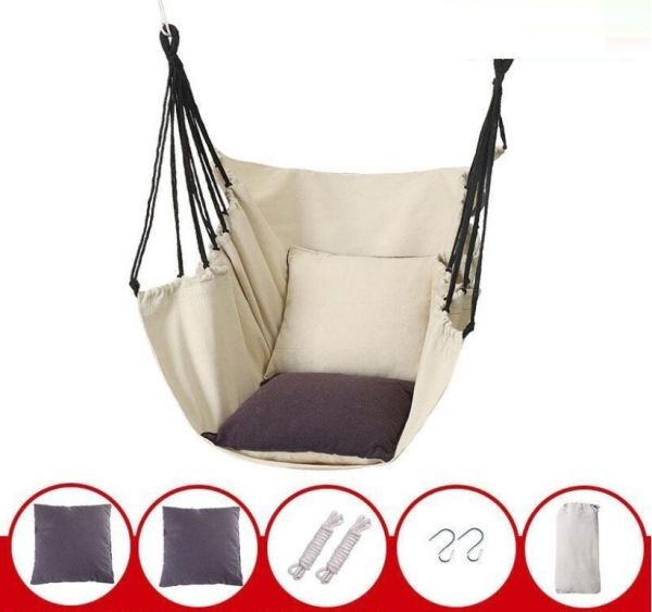 - 人気推薦 / 寝具 ハンモックチェア 吊り下げ ハンギングチェア ハンモック チェア 室内 屋外 キャンプ 折りたたみ クッション付き/ベージュ