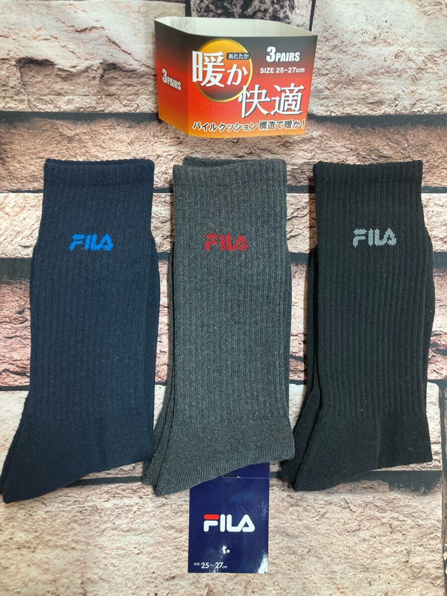 - 『画像から3足組』足底パイルクッションで暖か&快適な履き心地!【FILA】メンズクルー丈 綿混パイルソックスB柄