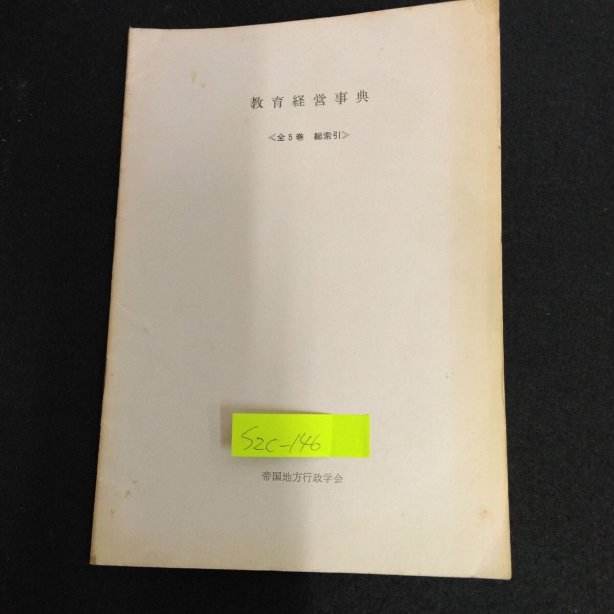 - S2c-146 教育経営事典 全5巻 総索引 帝国地方行政学会 本事典全5巻についての全見出し項目と他の重要事項を五十音順に配列 発行年月日不明