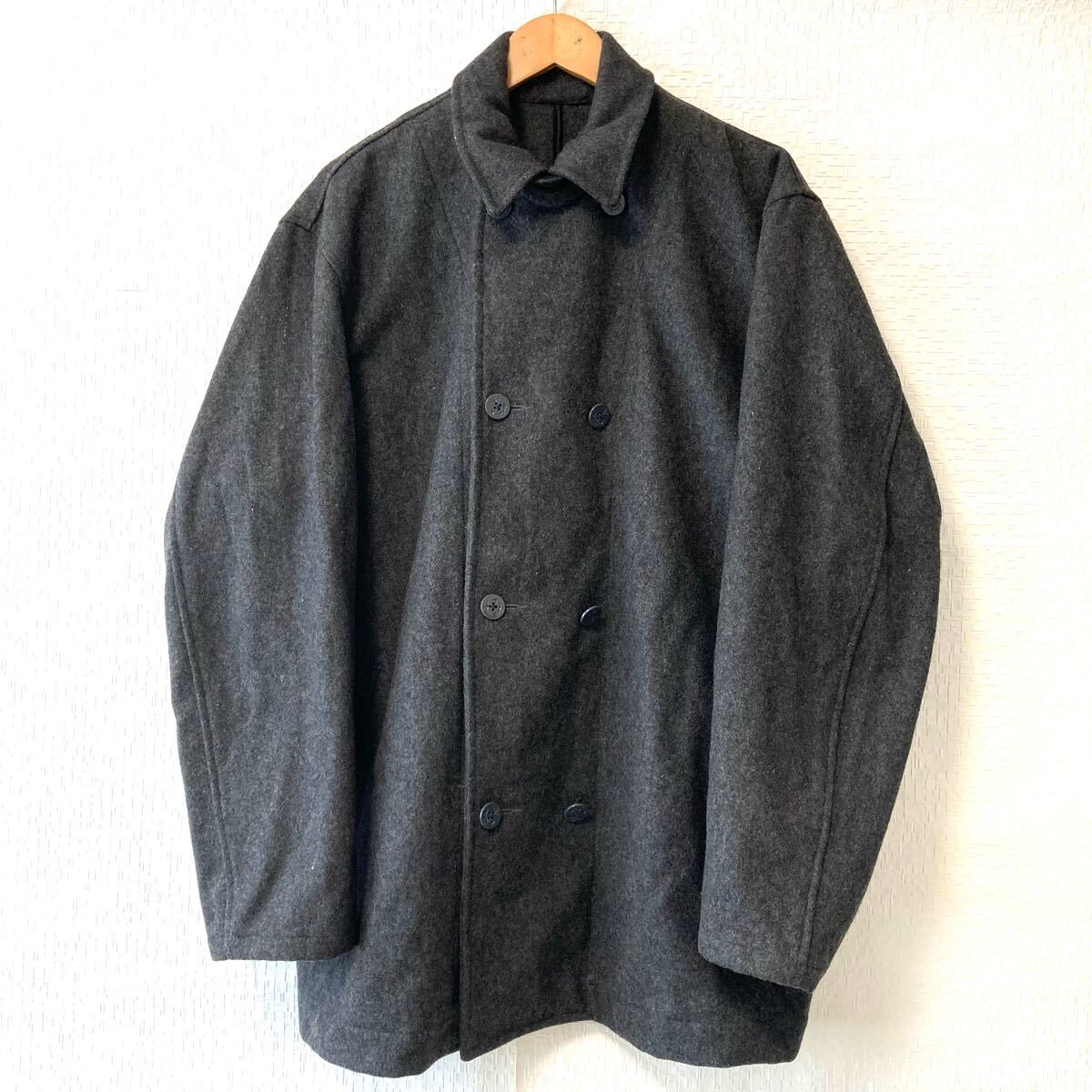 - 状態良好◎ 大きいサイズ!XL!【UPST】アップスタート Pコート ピーコート ウール混 アウター 無地 通勤 通学 グレー メンズ/Y31368UU