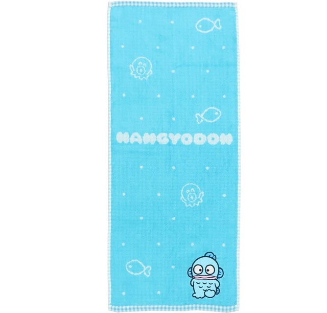 > 【即決】▽ハンギョドン フェイスタオル▽ サンリオ キャラクター タオル ブルー 抗菌防臭加工 かわいい 部活 スポーツ 体育 吸水力
