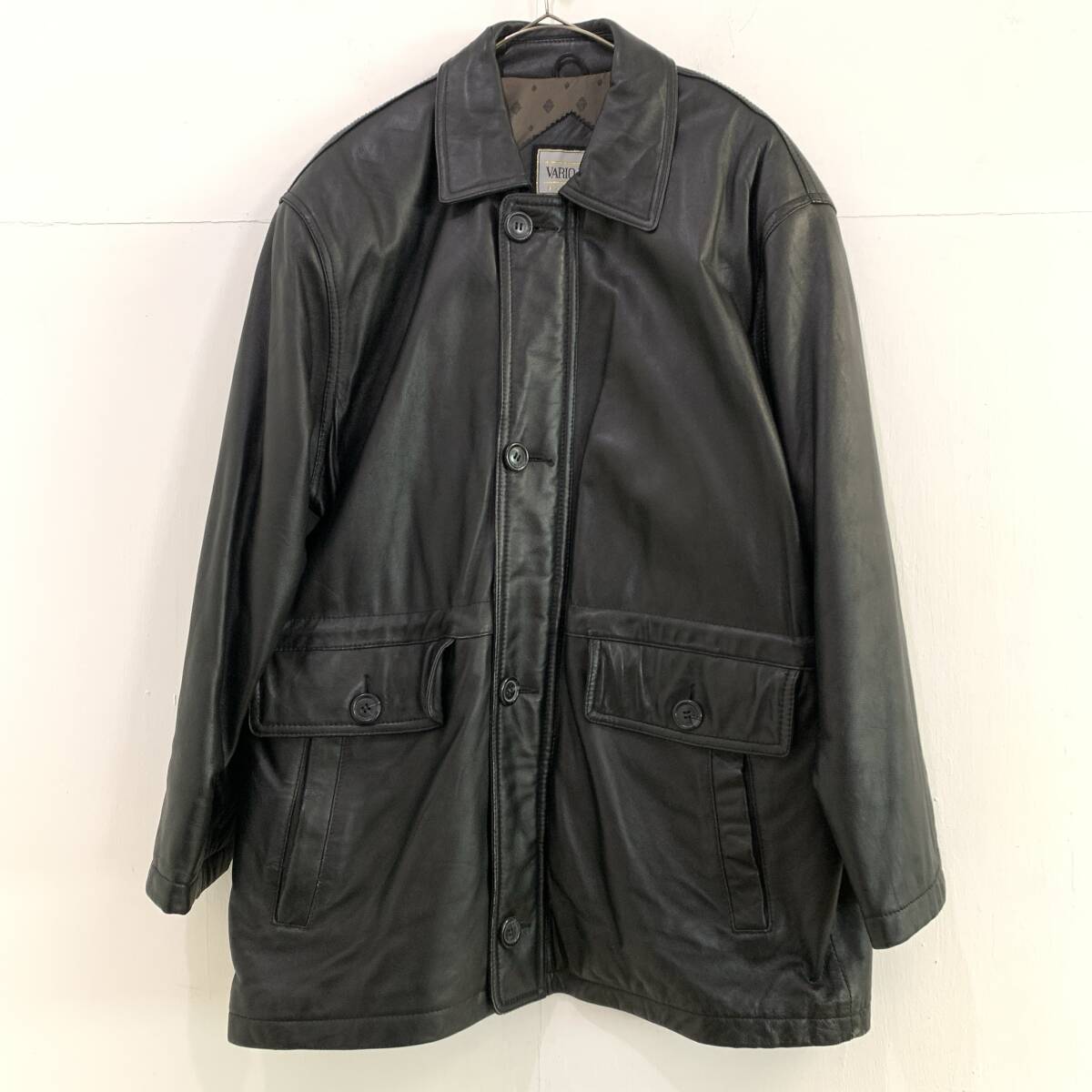 > ☆上質 VARIO MAX 90s Vintage イタリアラム 羊革 リアルレザーコート ジャケット カーコート ブラック サイズM【送料一律/同梱可能】H