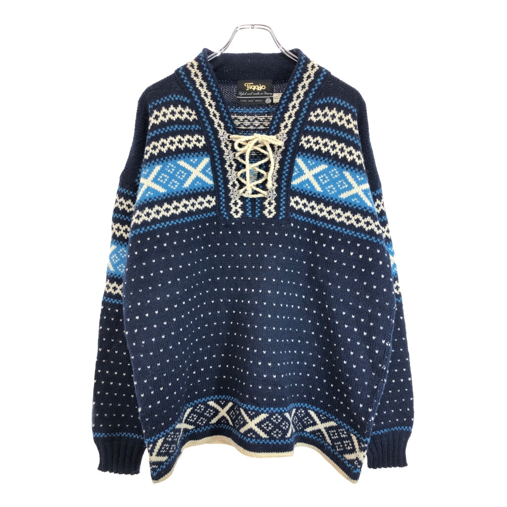 - ペルー製 Figgjo チロリアンニットセーター ネイビー(メンズ 54)中古 古着 U3610