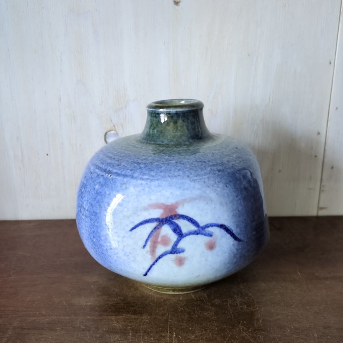 - 吹き墨 色絵 花瓶 陶印あり 作者不明 花入 花器