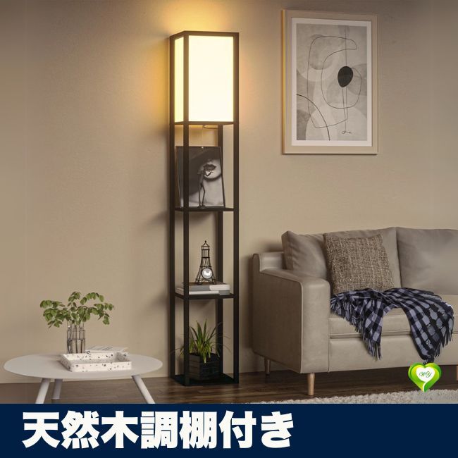 - 【天然木調棚付き】フロアライト 間接照明 おしゃれ スタンドライト LED 調光 調色 リモコン 棚付き 寝室 ルームライト 人気 おすすめ