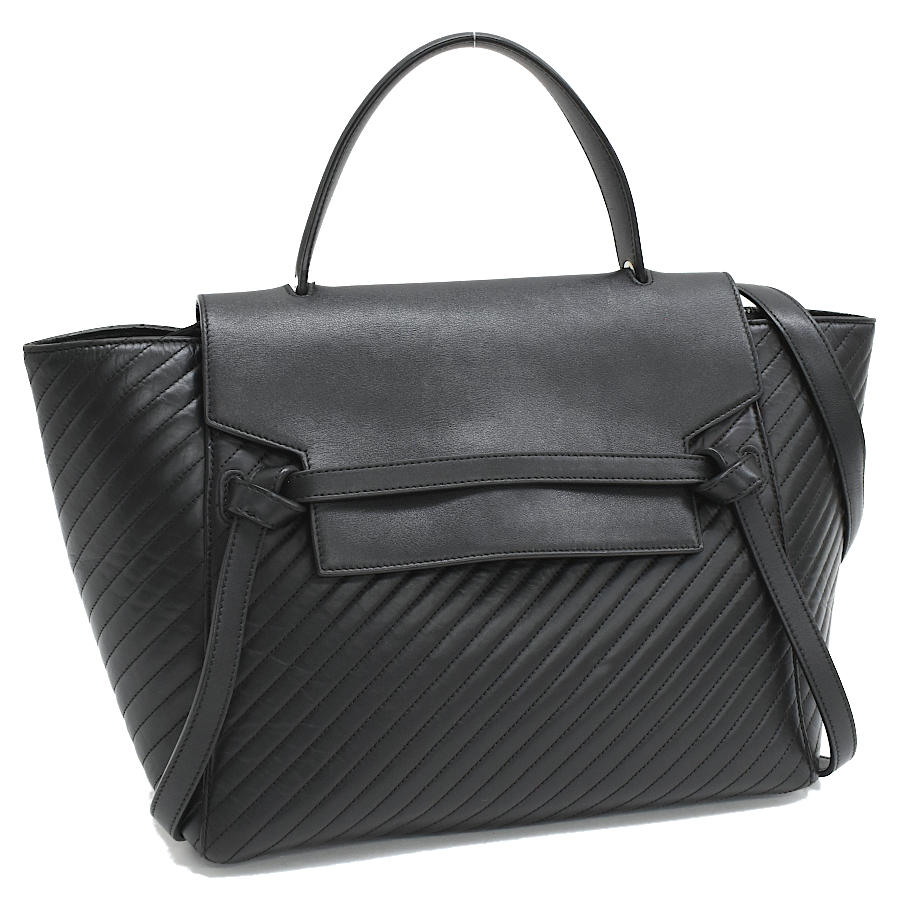 > 新品同様 セリーヌ ベルトバッグ ミニ 2way ハンドバッグ ダイアゴナル キルティング レザー ブラック CELINE