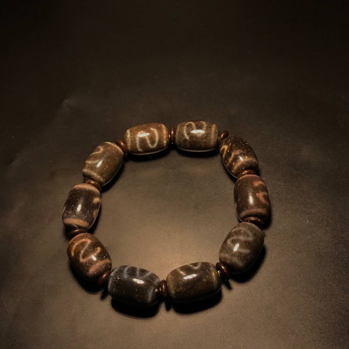 - 蔵友旧蔵出 瑪瑙製 細密彫 金錢勾象雄天珠手串 根付裝身具 希少珍品 賞物 中国時代美術品
