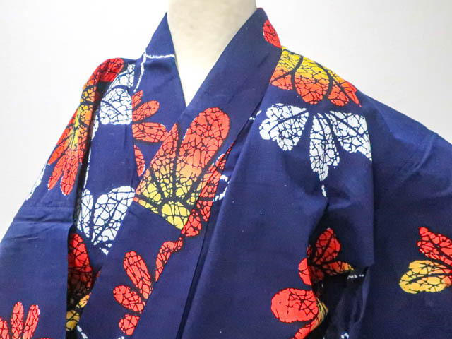 - 《古美術京松》【着物】昭和レトロ 浴衣 コーマ地 花文様 身丈約145cm 裄丈約63cm r7z05-515