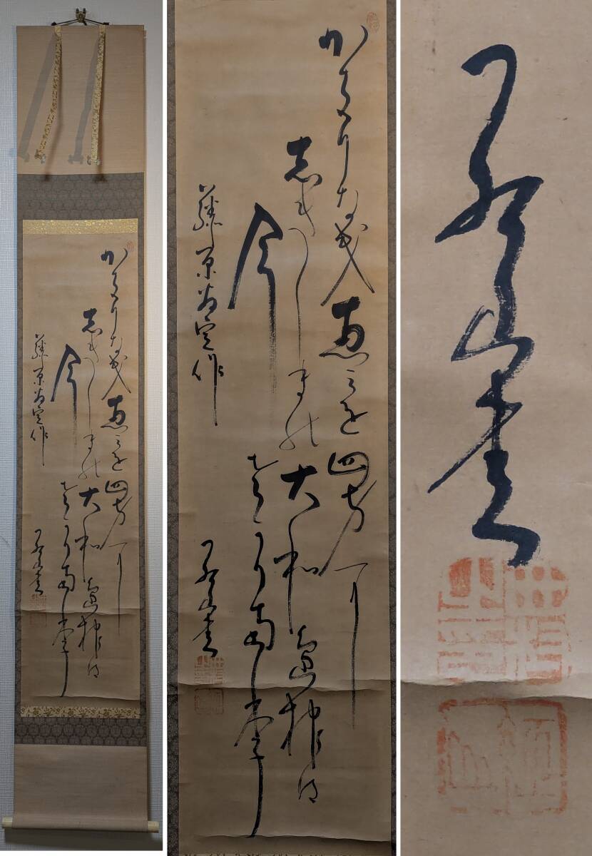 - 【真作】掛軸 和歌書 行草体 墨蹟風 書道掛軸 筆勢力強い詩書作品 S91