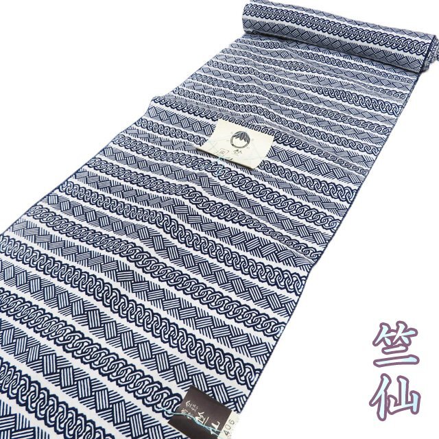 - 夏物 夏着物 反物 浴衣 着物 未仕立て 新古品 木綿 カジュアル 竺仙 吉原繋ぎ模様 白色 濃紺色 きもの北條 A1200-7