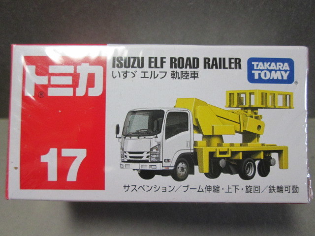 > トミカ No.17 いすゞ エルフ軌陸車 サスペンション/ブーム伸縮・上下・旋回/鉄輪可動 ISUZU ELF ROAD RAILER