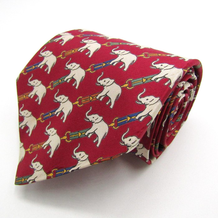 - ジムトンプソン ブランド ネクタイ ストライプ柄 総柄 動物柄 ゾウ シルク PO メンズ レッド JIM THOMPSON
