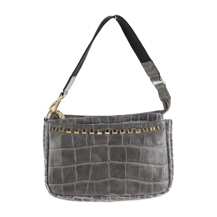 - 美品 ADMJ エーディーエムジェイ ショルダーバッグ ハンドバッグ クロコ型押しレザー グレー 2WAY クラッチ【本物保証】