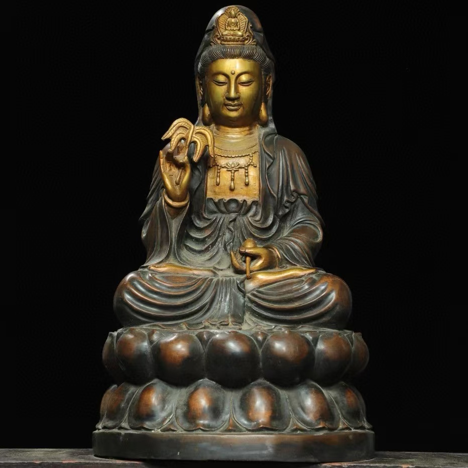 - 仏像 清代 旧蔵 宗教 古銅 金【観音菩薩】仏像造像 銅製 銅琉金 仏教 唐物 收蔵品 時代物 古美術 細密造 古置物 希少珍品 供養品 5.31