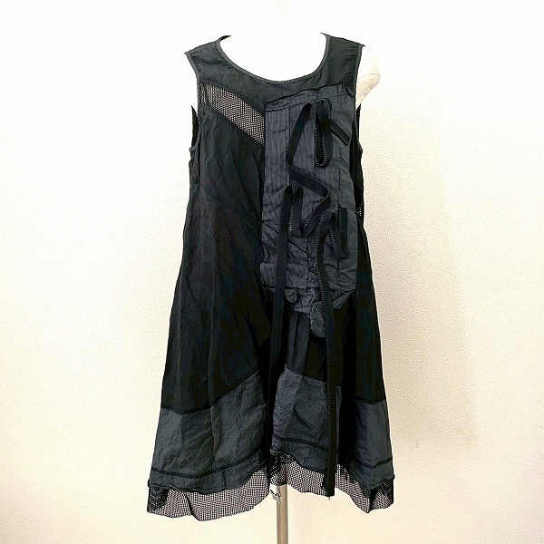- #snc エイココンドウ EIKO KONDO チュニック 42 黒系 グレー ノースリーブ ファスナー メッシュ 変形 レディース [948241]