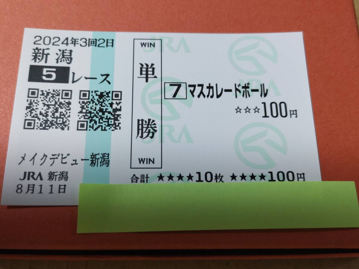 - 14 JRA★競馬★マスカレードボール★2024.8.11 メイクデビュー新潟★現地単勝的中馬券
