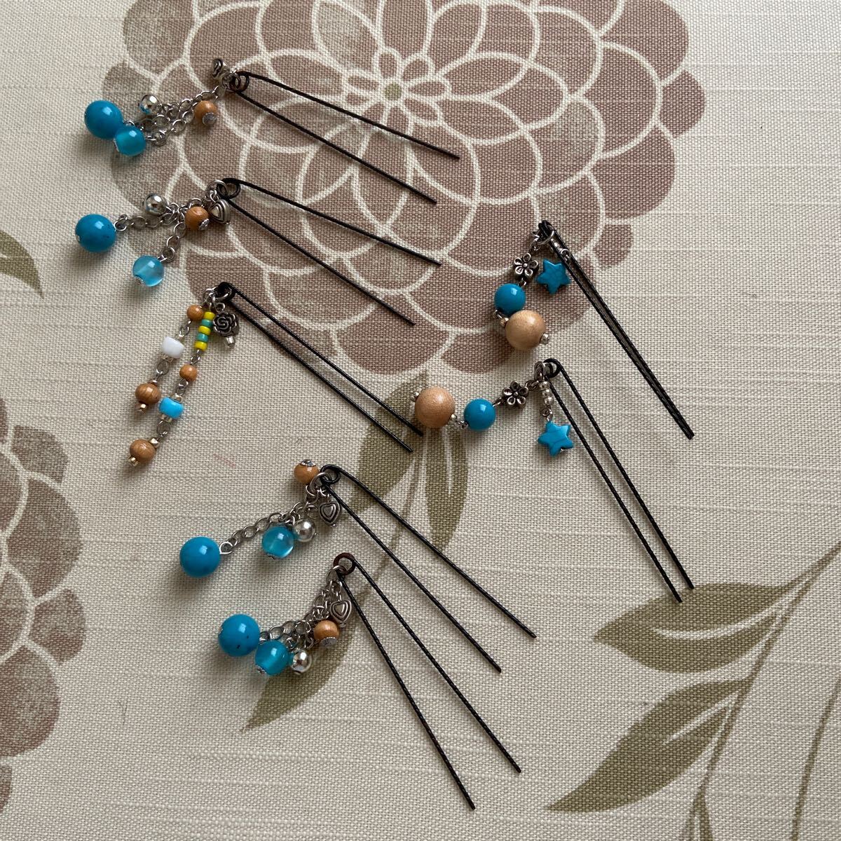 - ユーピン ターコイズブルー ビーズ 7 かんざし 髪飾り