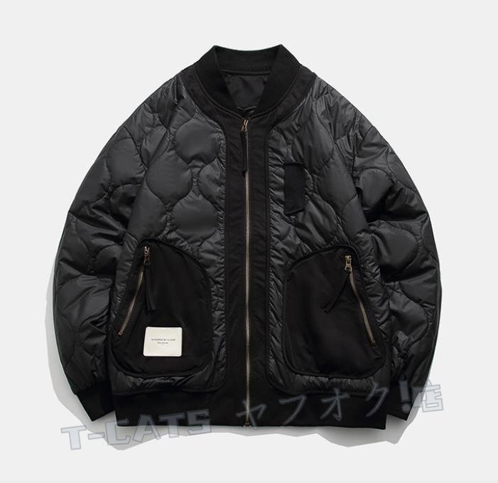 > ☆新品キルティング 中綿フライトジャケット 羽織 ビッグポケット 軽い メンズ 防寒 ライトアウター クロ サイズ選択可
