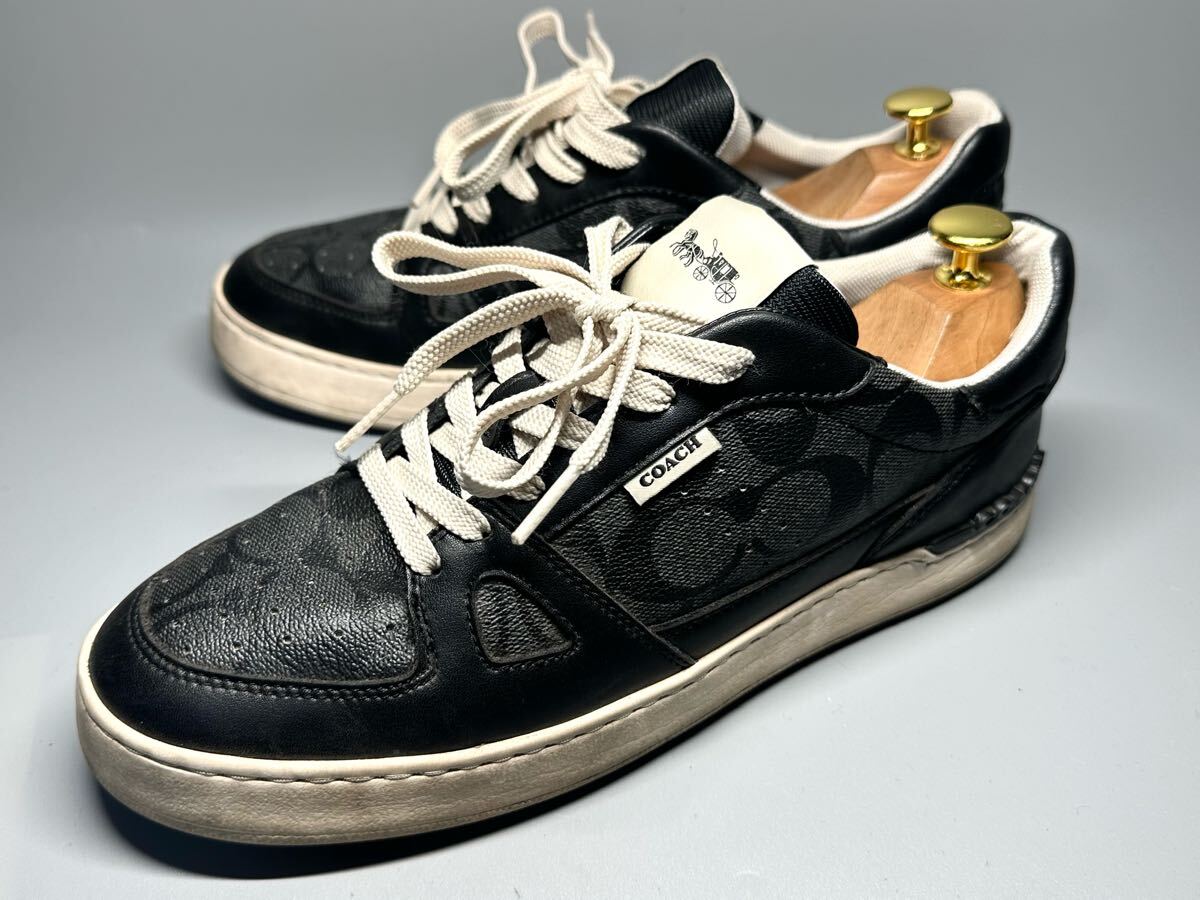 - 【即決】COACH コーチ メンズ 27cm US9D スニーカー 黒 ロゴ カジュアル レザーシューズ 靴 くつ レザー C8965 人気 オシャレ
