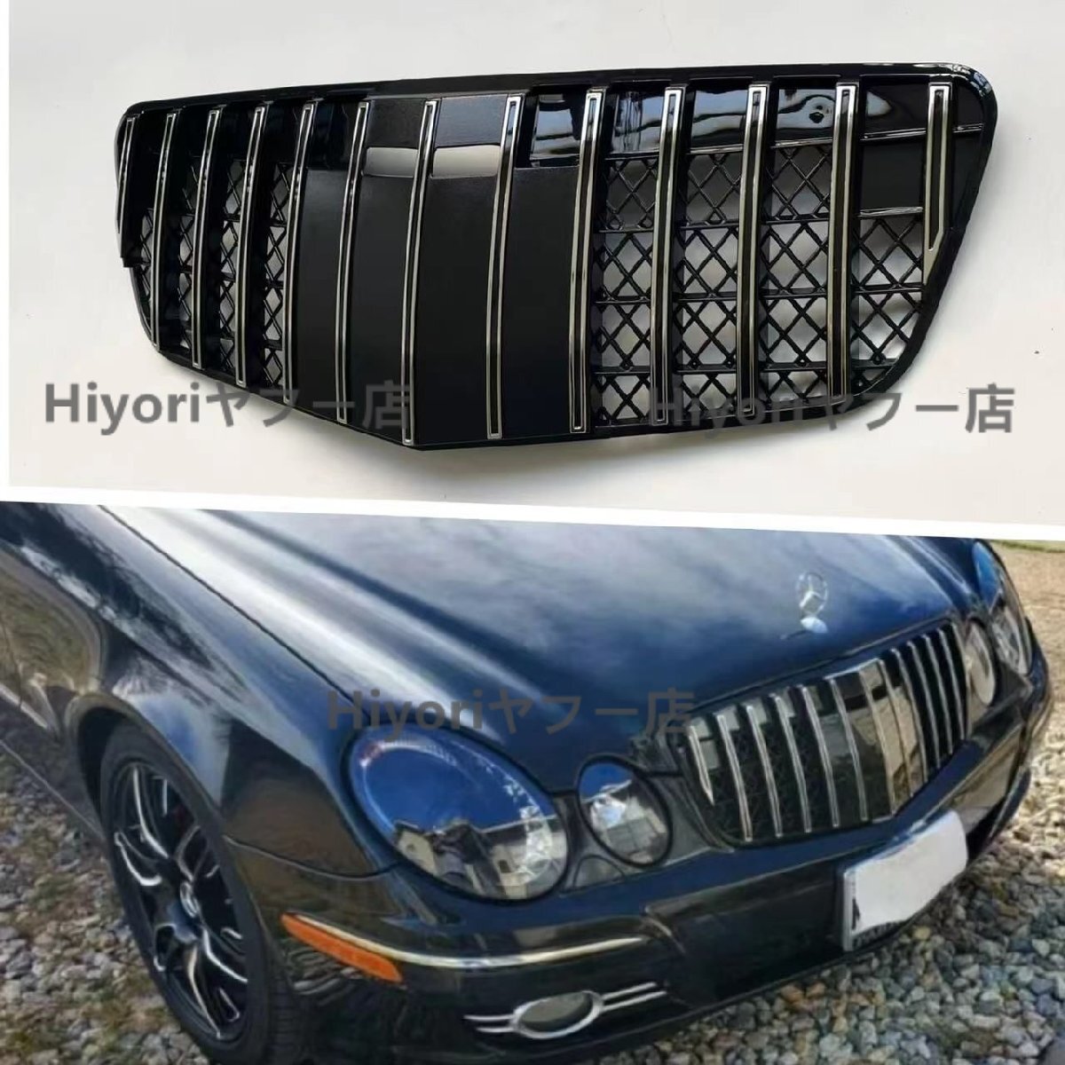 > 美品メンズ カーアクセサリー クラシックモダン向け ベンツ Eクラス W211 後期型 GTスタイル フロントグリル 竪条デザイン ABS製