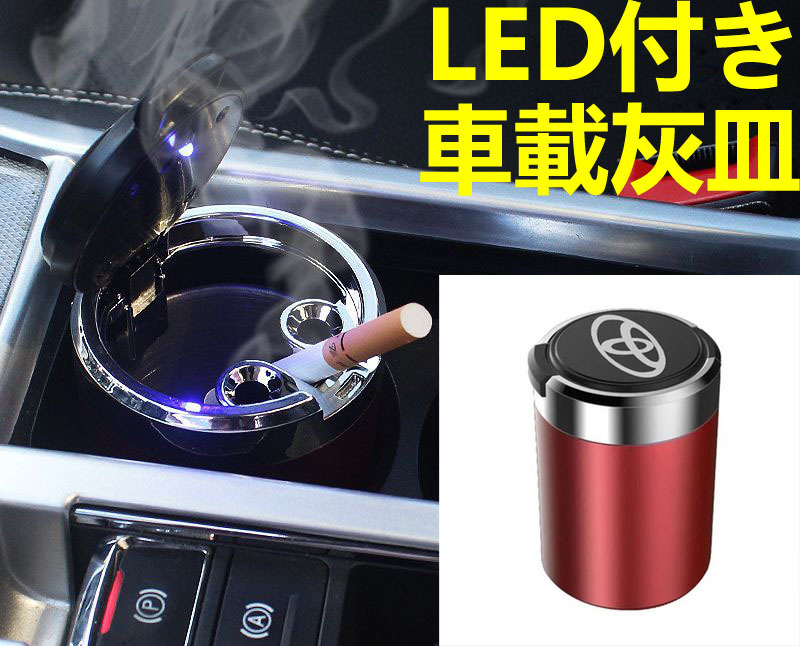 - LED付車載灰皿 トヨタ TOYOTA レッド ドリンクホルダー型 自動車用灰皿/火消し穴/タバコ/汎用灰皿/アシュトレイ