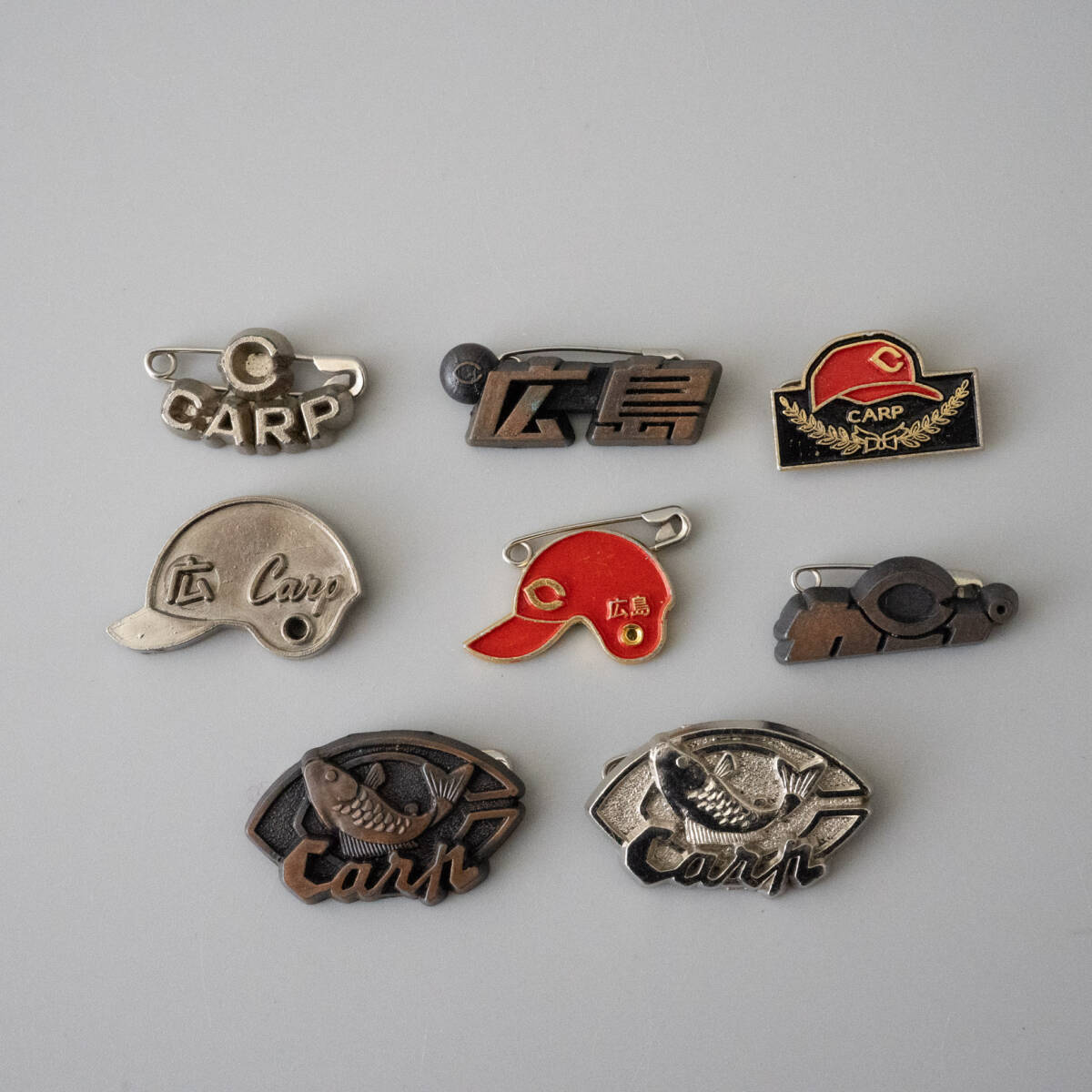 - 昭和レトロ 当時物 プロ野球 バッジ 8個セット 広島 カープ ピンバッジ バッチ