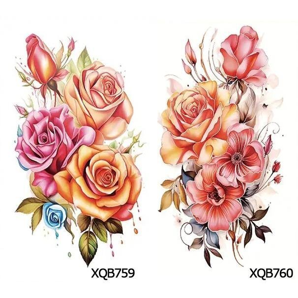 - 【タトゥーシール】★花柄 2枚セット フェイクタトゥー 11.5cm×21cm 腕 脚 刺青シール 防水・耐久性あり! (XQB-759+760)
