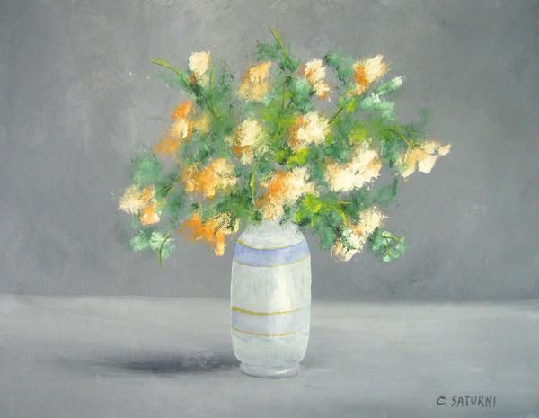 - ヨーロッパ絵画 肉筆油絵 (額縁付きで納品対応可) サイズF6号 サツルニ作 「花瓶の花束」
