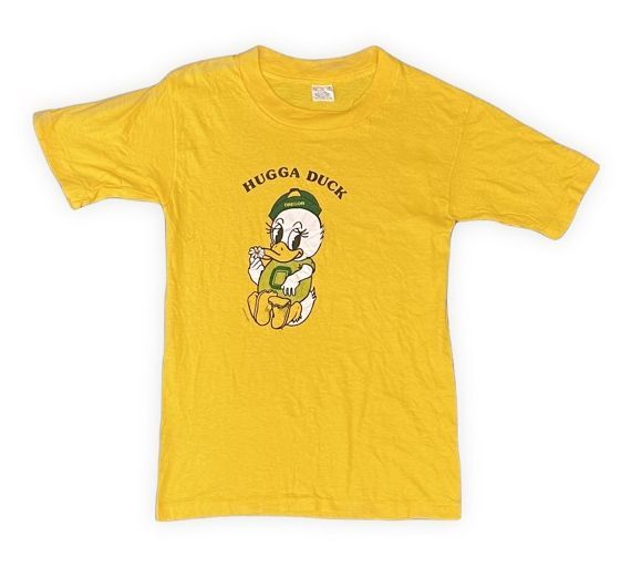 > 70’s 80's 米国製 MADE IN USA ベルトン BELTON ビンテージ Tシャツ オレゴン大学 マスコット HUGGA DUCK イエロー S [la-1318]