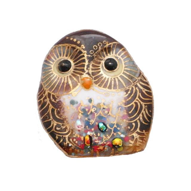 - 【UncleZ】七宝焼きブローチ・ ふくろう(中・茶)