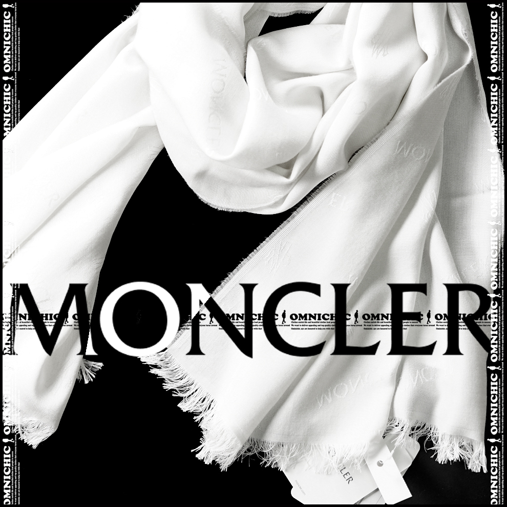 - 贅沢大判シルク200cm全面モノグラムロゴ■国内正規品/新品【MONCLER】モンクレール抜群の高級感/シルクウールホワイトストール/200cm×69cm