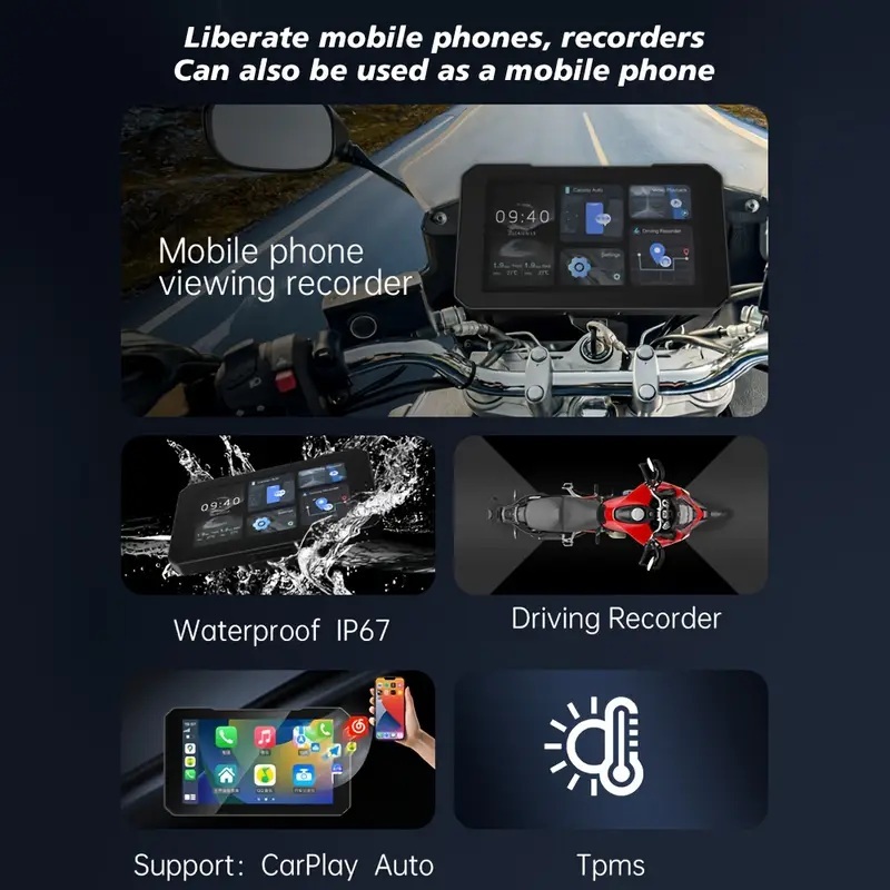 - オートバイクモーターサイクルナビゲーションタッチパネル前後カメラ付きIP67防水仕様タイヤのエアー管理できる便利物人気見やすいオススメ