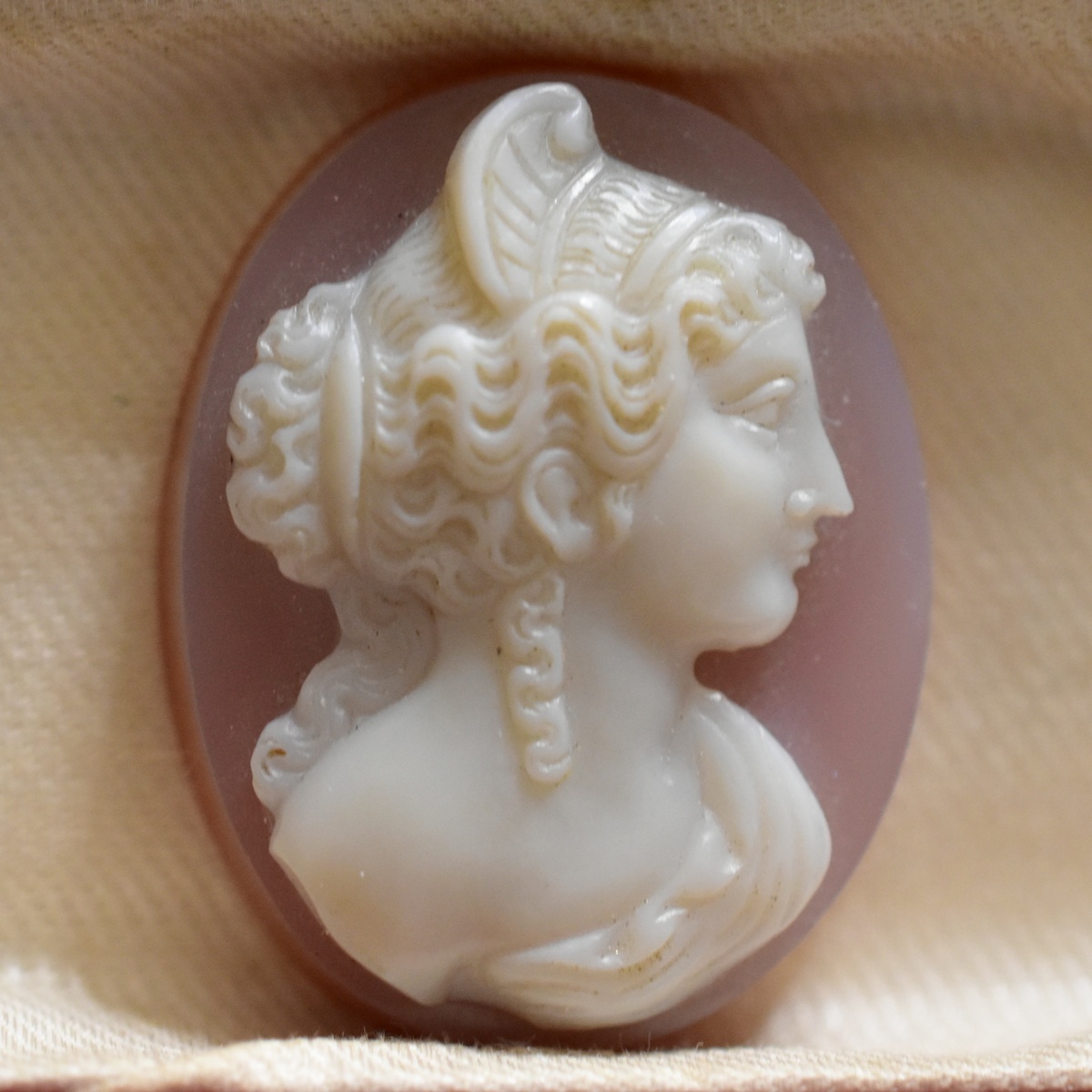 - アンティーク 手彫り ゼウスの妻、契約/結婚の女神ヘラの手彫りハードストーンカメオルース/裸石 本物保証 サードニクス 19世紀