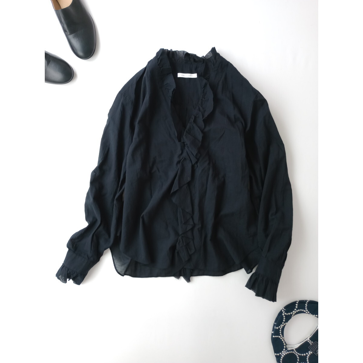- 24SS GALERIE VIE ギャルリー ヴィー トゥモローランド インドコットン フリル 長袖 シャツ 黒 ブラック