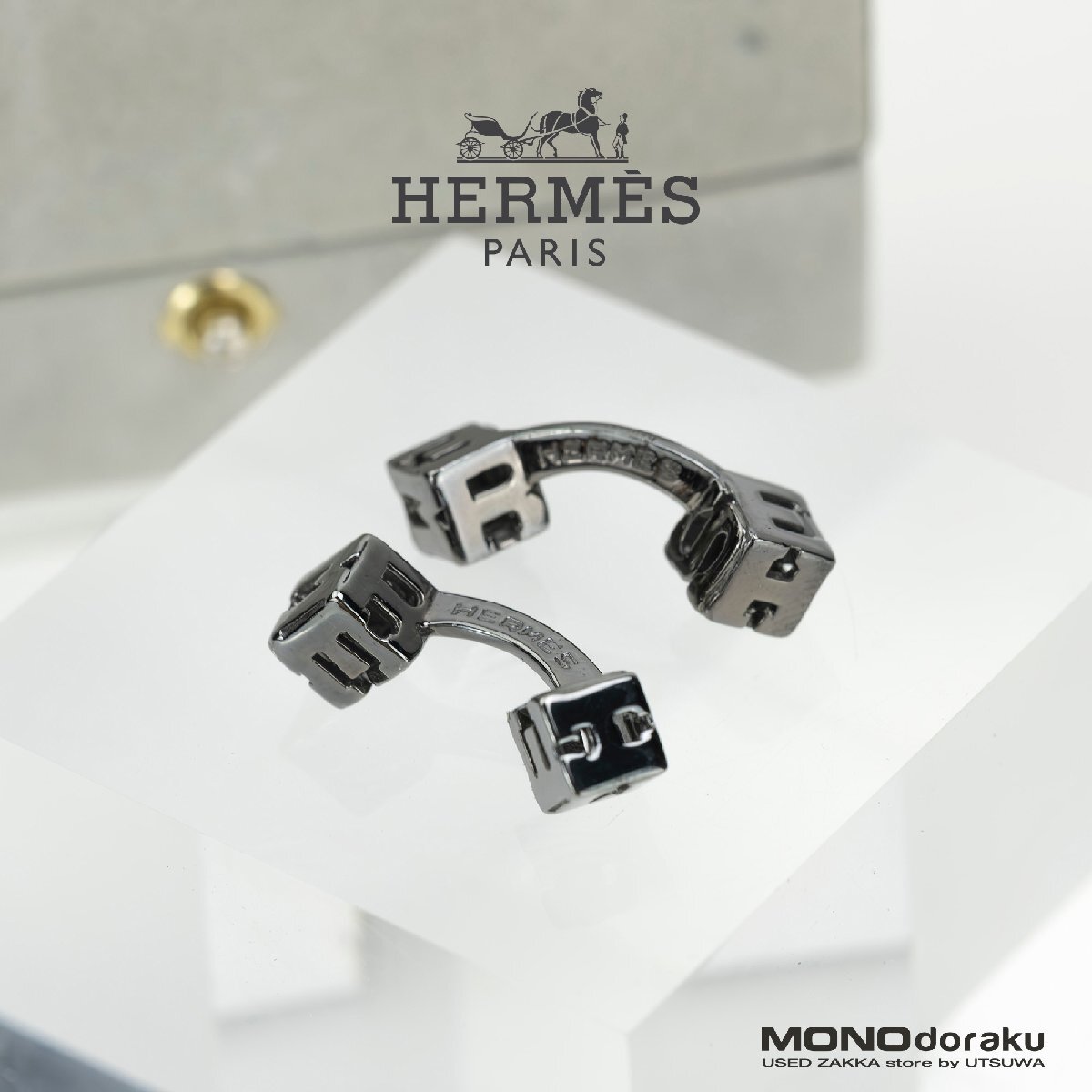 - エルメス HERMES キューブボックス ロゴモチーフ カフス カフリンクス シルバー925 ヴィンテージ