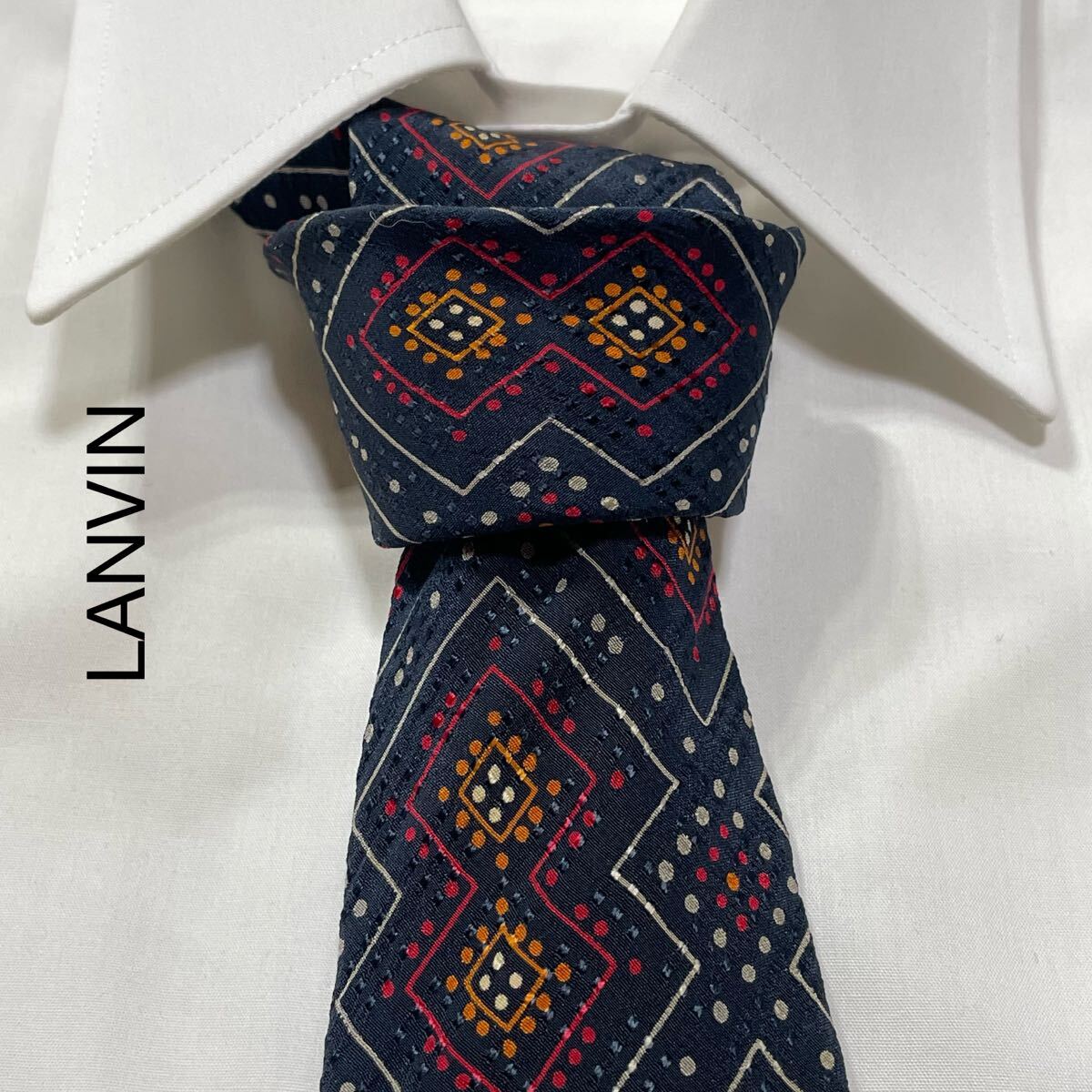 - LANVIN ランバン パターン柄 ドット シルク ネクタイ フランス製 ネイビー TG1683