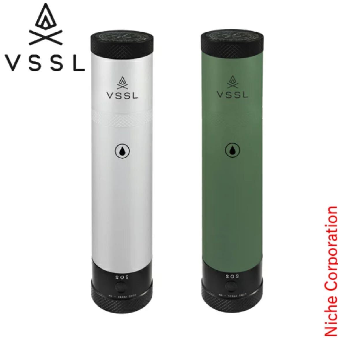 > VSSL FLASK シルバーまたはグリーン 栓抜き、2ショット、コンパス、ライト付き 新品