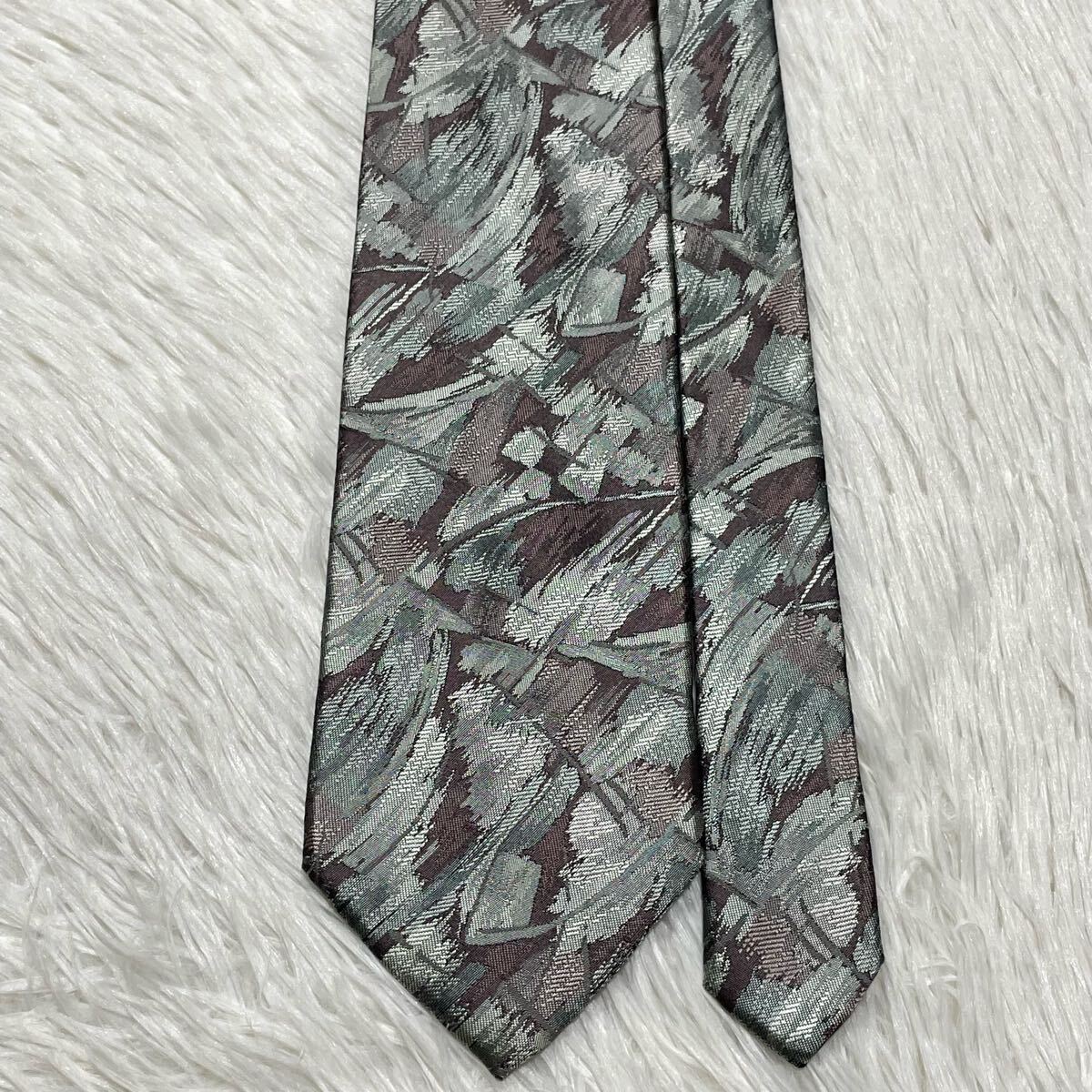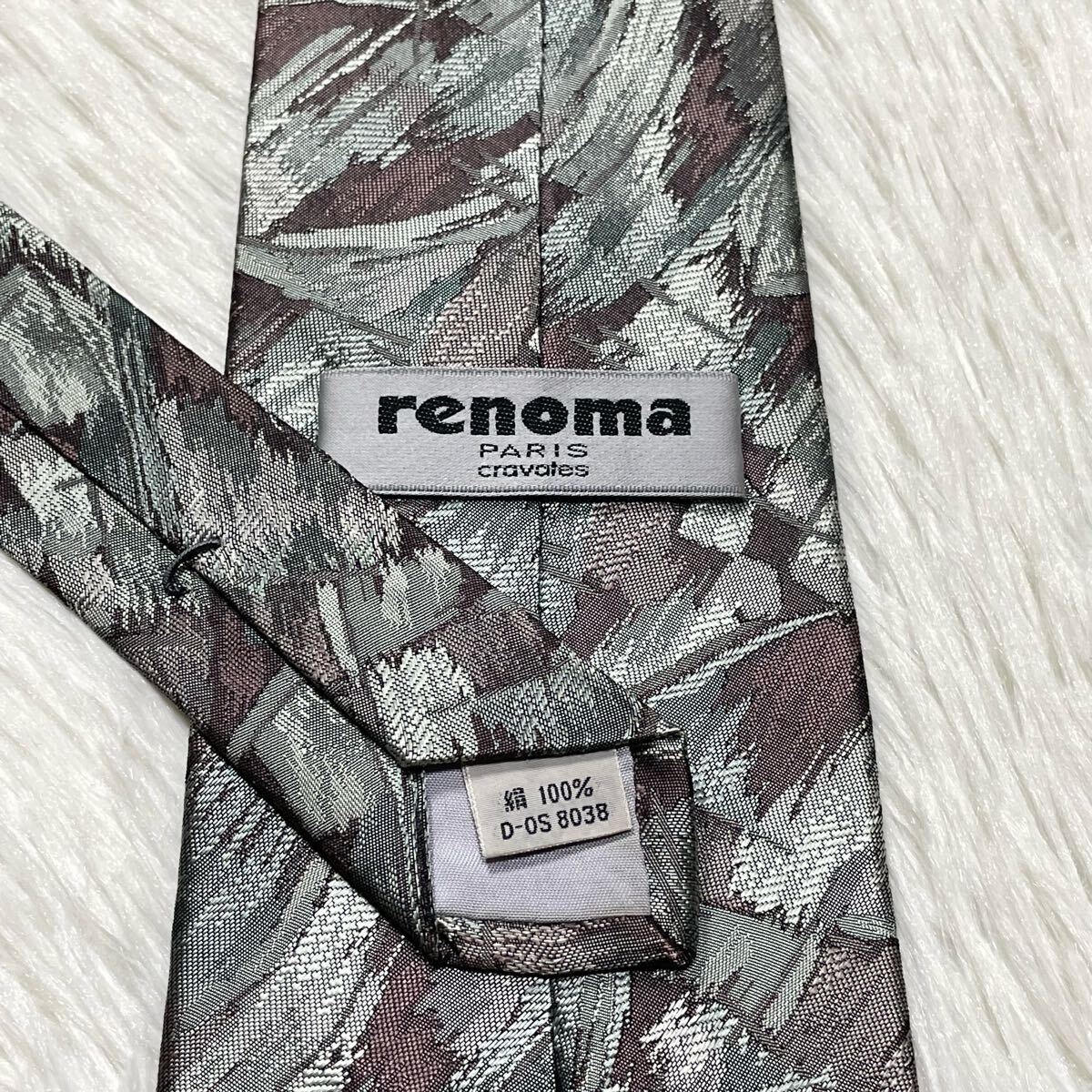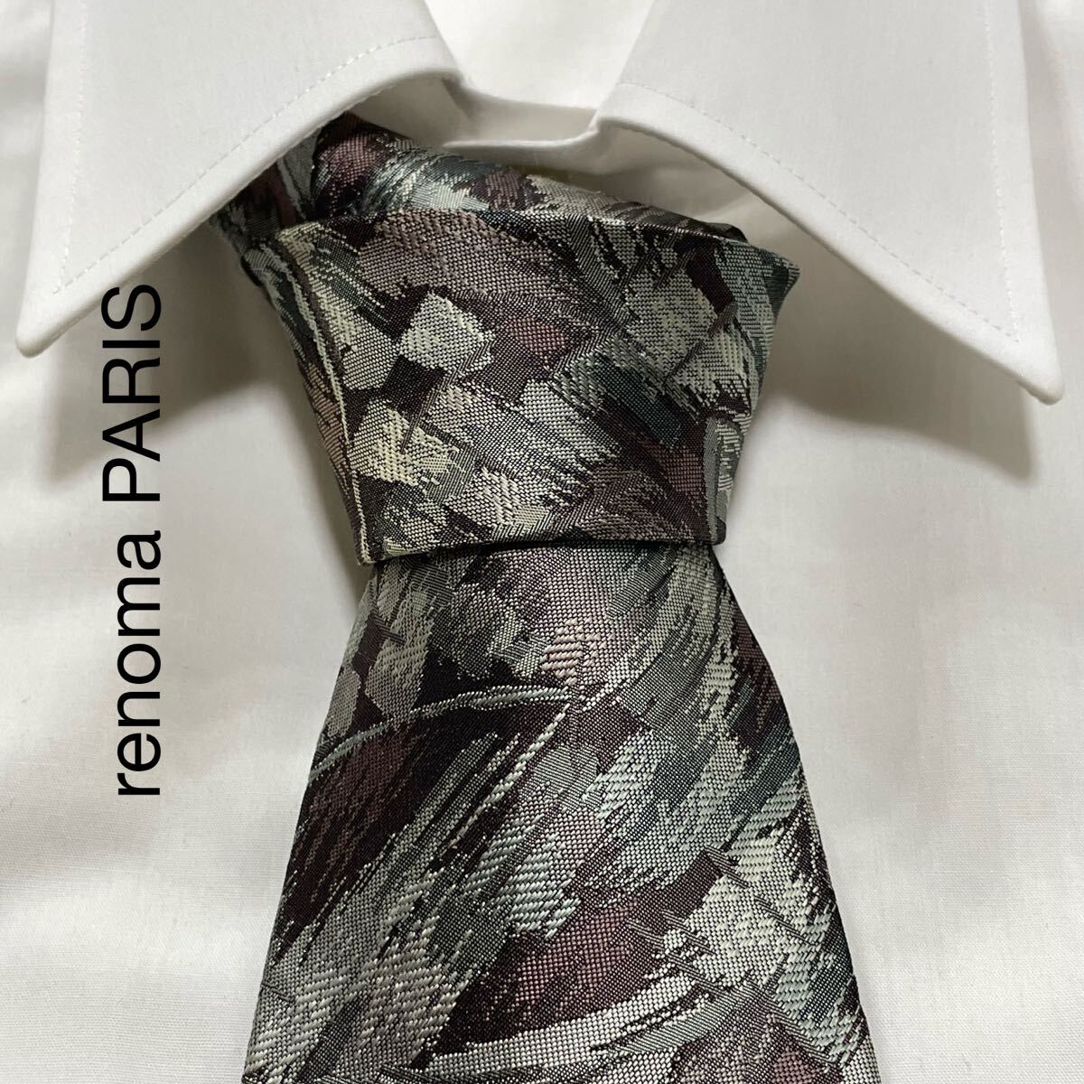 - renoma PARIS レノマパリス 総柄 ジャガード シルク ネクタイ グリーン系 ワイン TG1719