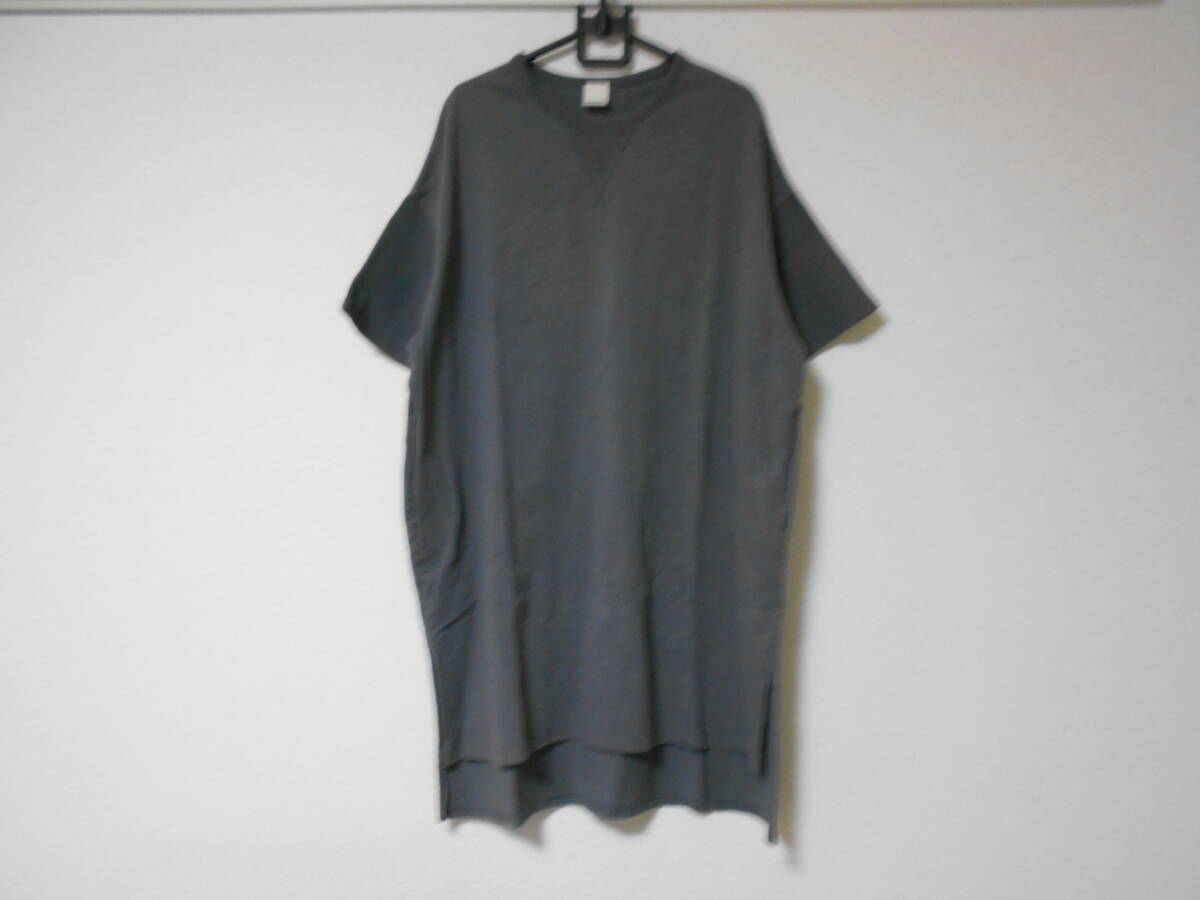 > DOUBLE NAMEダブルネーム☆レイカズン☆濃グレーの半袖Tシャツワンピース☆楽ちん♪ゆったり大きめシルエット☆着心地良いコットン素材☆F