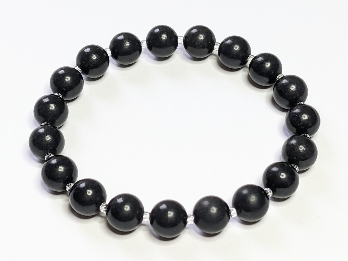 - 数量限定【限界市場】奇跡の石!希少な天然シュンガイト★電磁波対策★8mm★伸縮ブレスレット★定形郵便送料無料