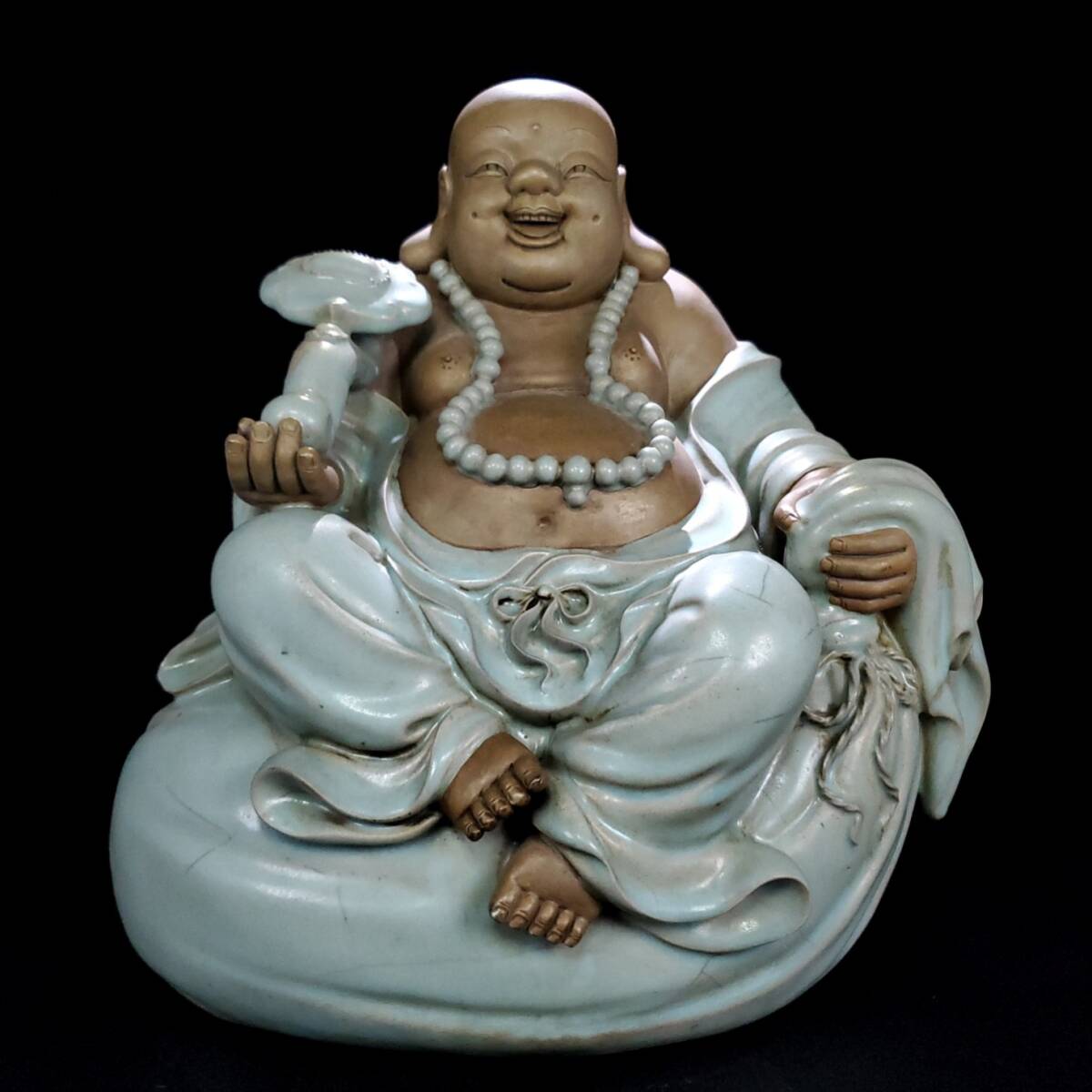 - 唐物 宋 汝窯 如意弥勒笑仏 造像 陶芸 古陶磁器 中国磁器 古美術品 時代物 中国古玩 骨董品 D66