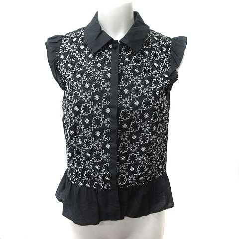 - エフデ ef-de シャツ ブラウス ノースリーブ 刺繍 9 M 黒 ブラック /YI レディース