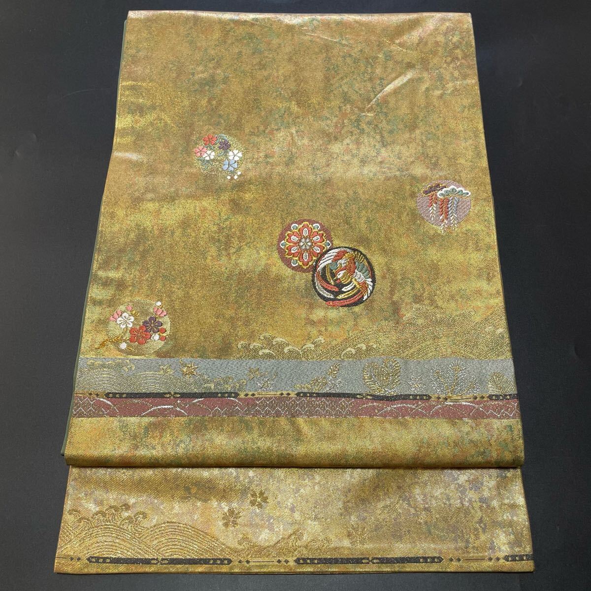 > #H240 美品 名古屋帯 新六通九寸 綴織 蘇州刺繍 金銀糸 丸文 鳳凰 梅 松 正絹 和装 和服 フォーマル【wellriver】