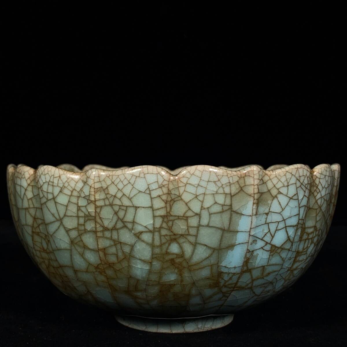 - 『館蔵珍品 宋 古陶瓷品 汝窯 冰裂紋 花口碗 陶藝』稀少珍蔵品 古賞物 貴重物品 収蔵品 中国古美術 時代物 古董品