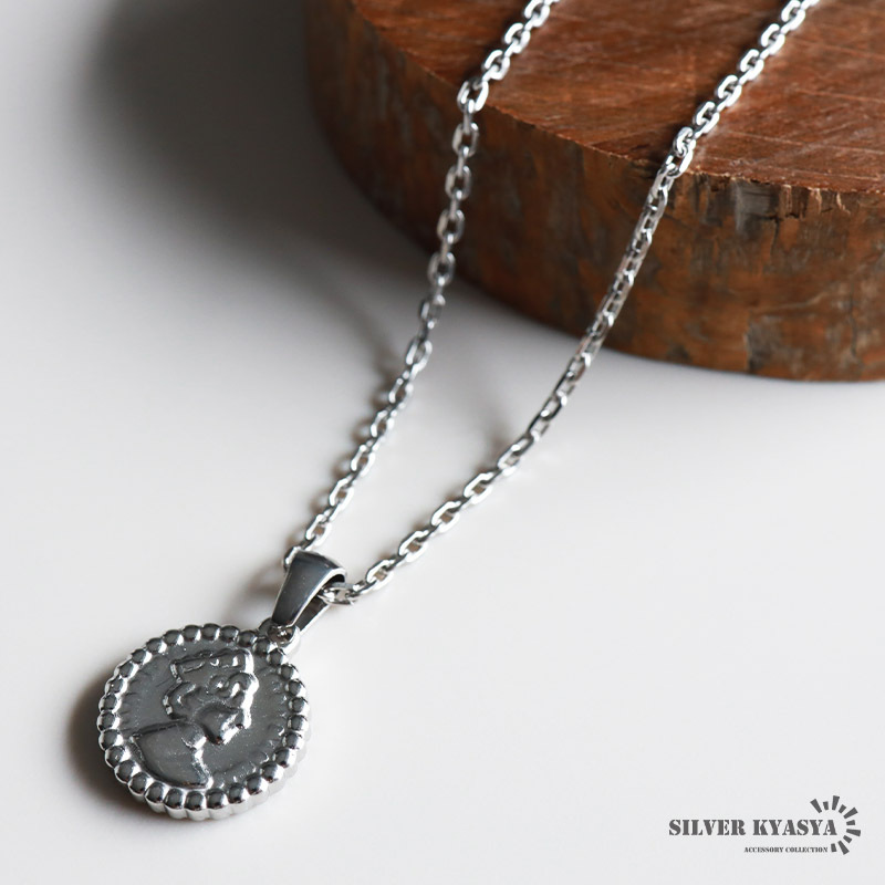 > (60cm) コインネックレス あずきチェーン アンティーク エリザベス女王 ネックレス シルバー ステンレス 金属アレルギー対応