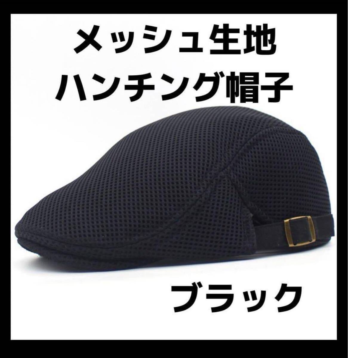 - 新品!ハンチング 帽子 メッシュ ブラック キャップ サイズ調整 夏用 通気性